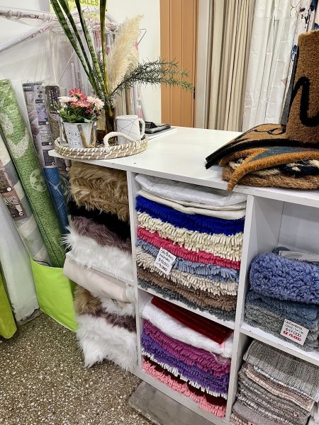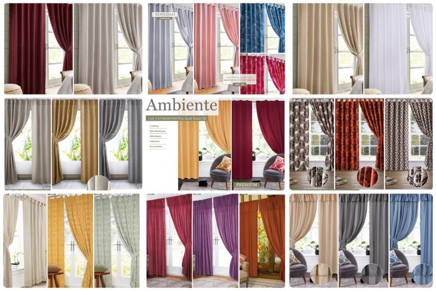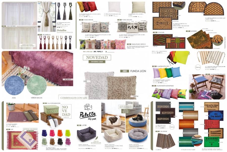 - Cortinas y barrales de madera, fundas para sillones, almohadones decorativos, borlas, alfombras, felpudos.