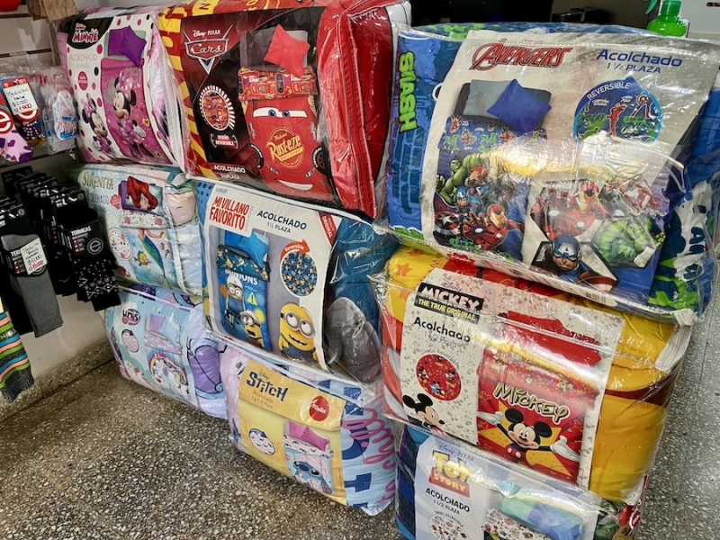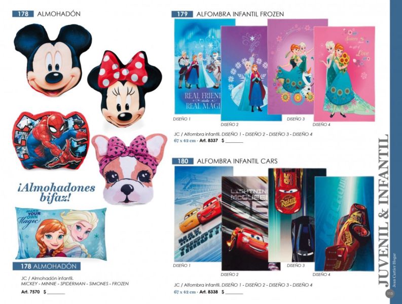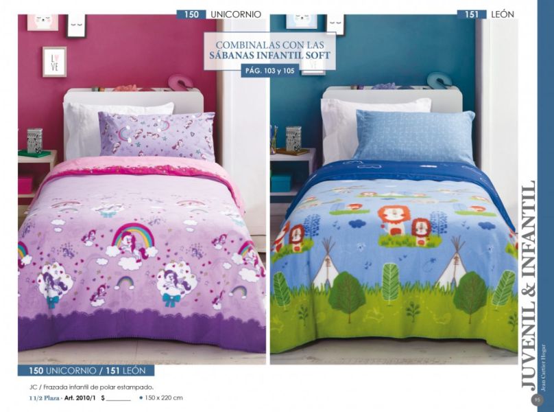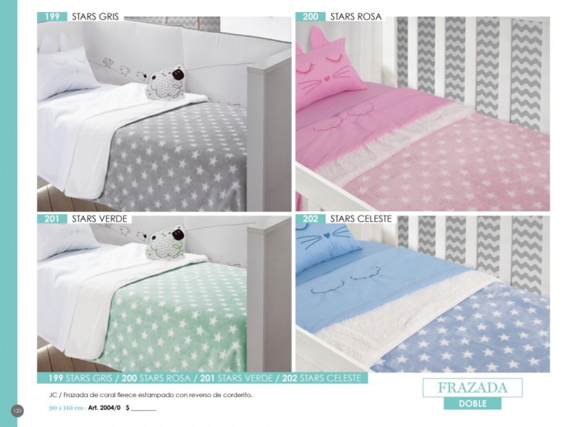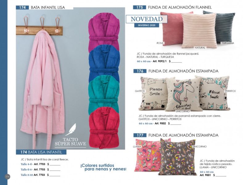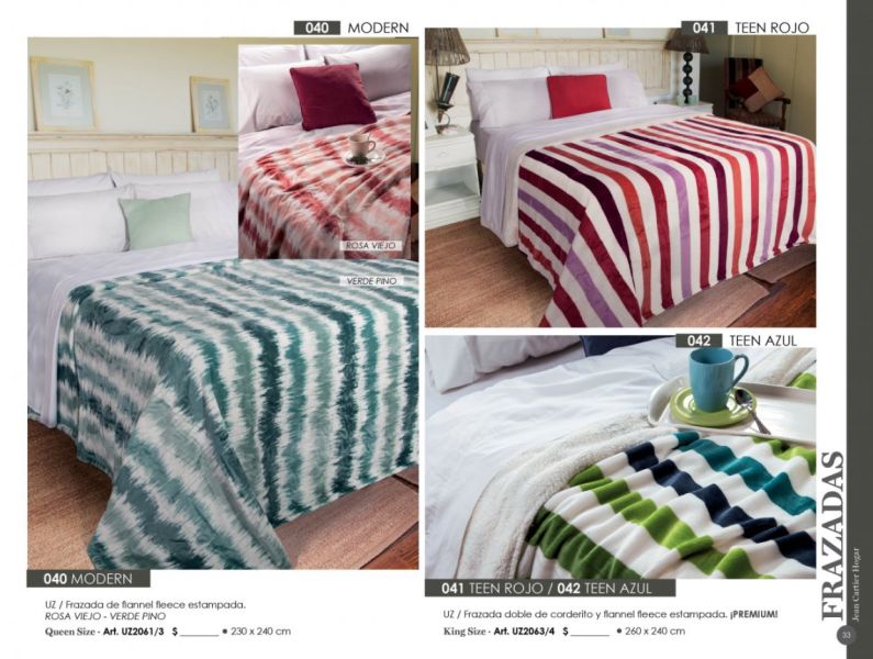 - Frazadas y mantas (coral fleece, polar), juegos de sábanas bordadas, acolchados, toallones con capucha, organizadores, batamantas, almohadones decorativos.