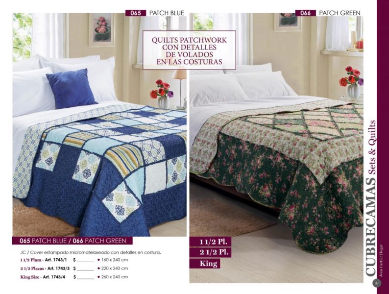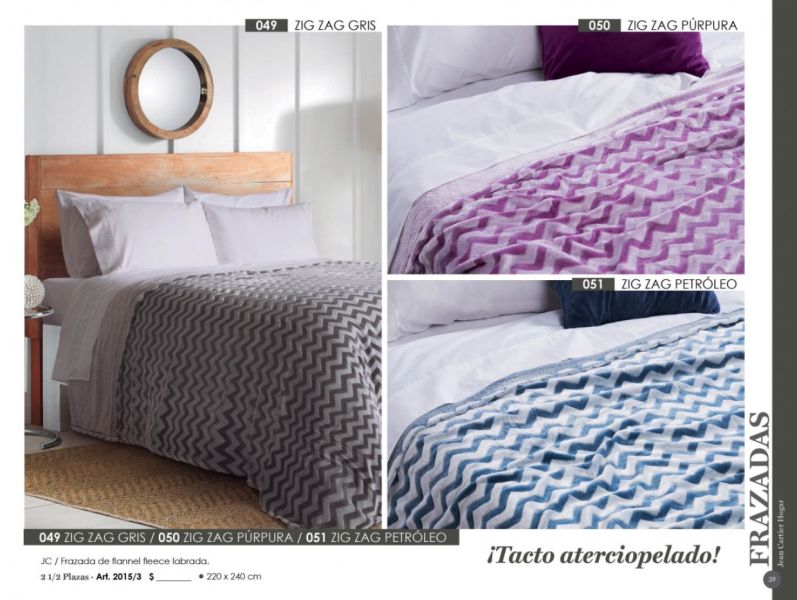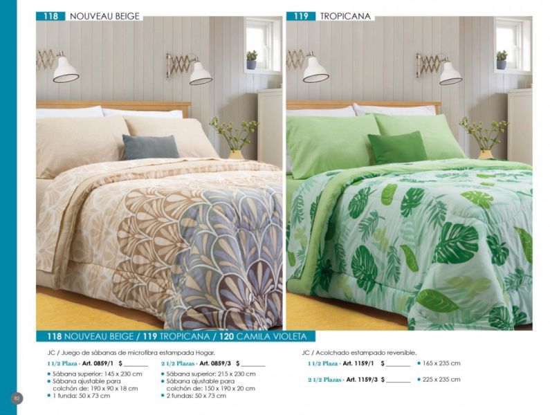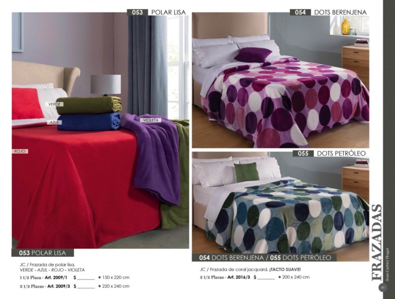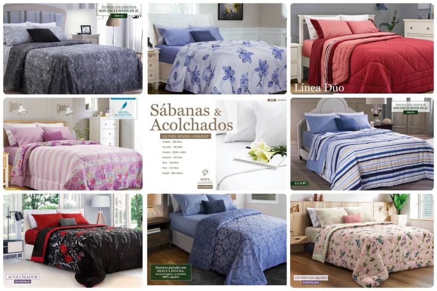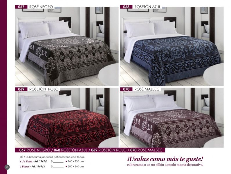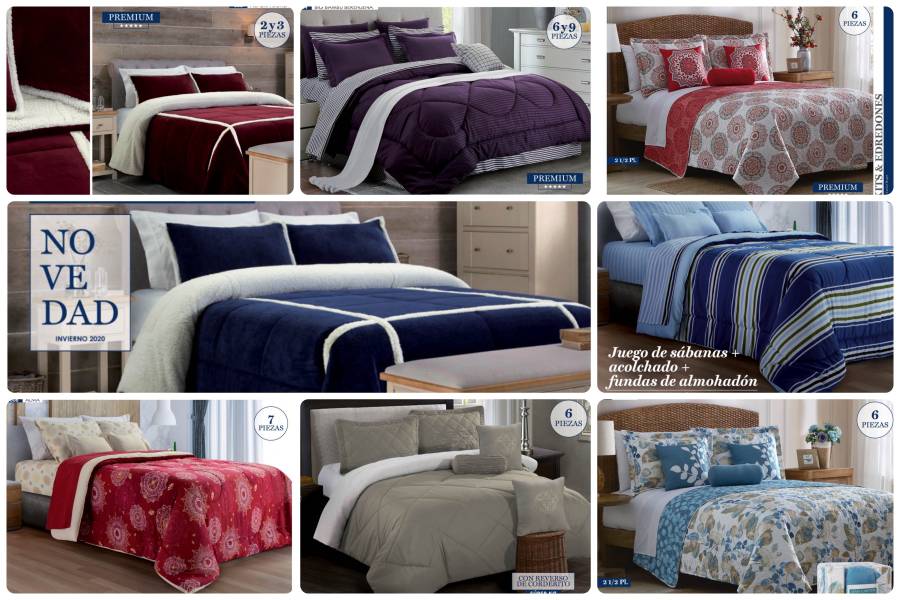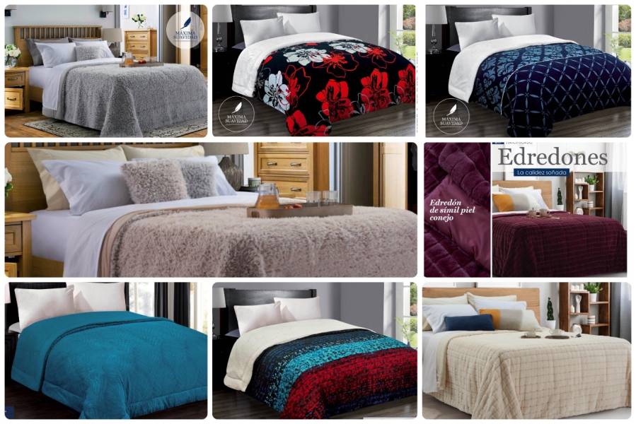 - Acolchados, cubrecamas y edredones: Microfibra, matelaseados, jacquard rústico, coral fleece, símil piel de conejo.