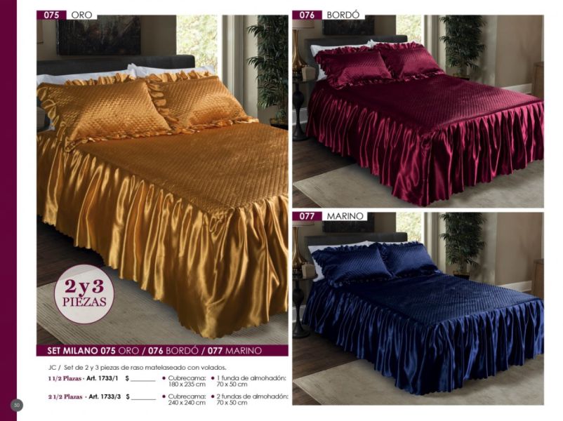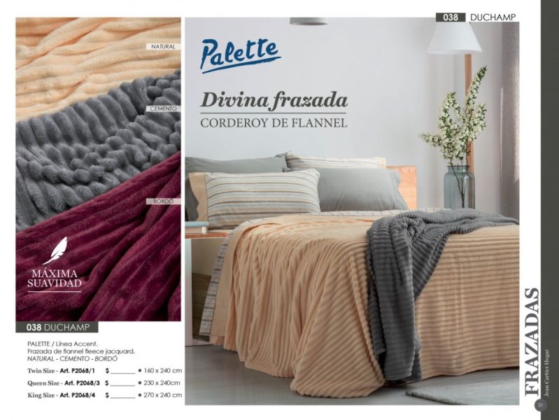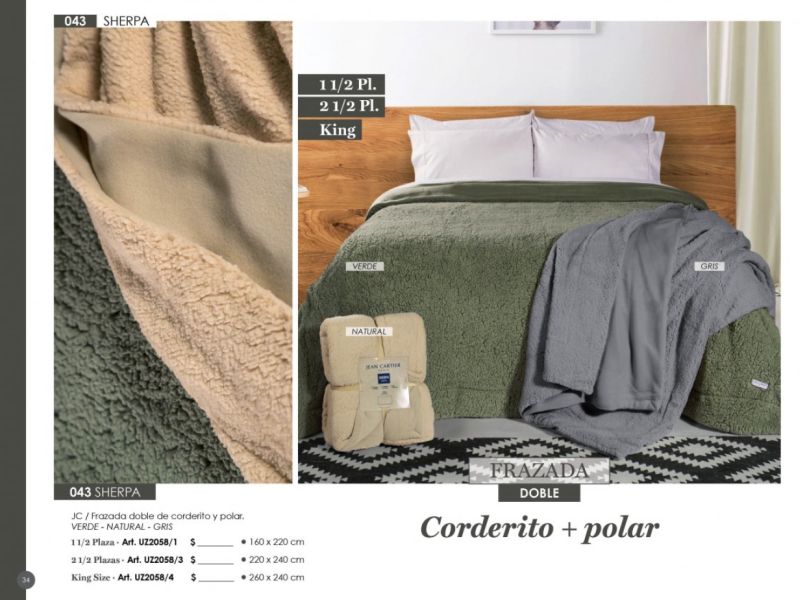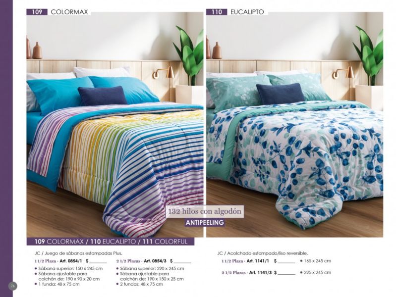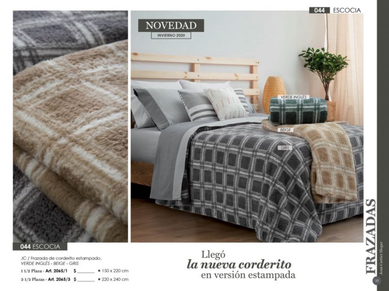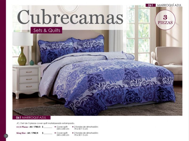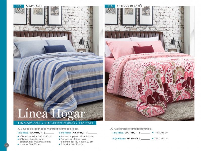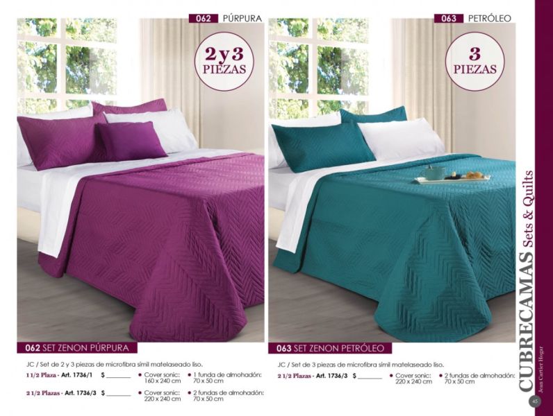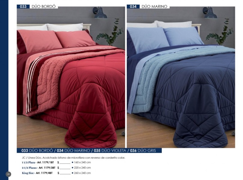 - Acolchados, cubrecamas y edredones: Microfibra, matelaseados, jacquard rústico, coral fleece, símil piel de conejo.