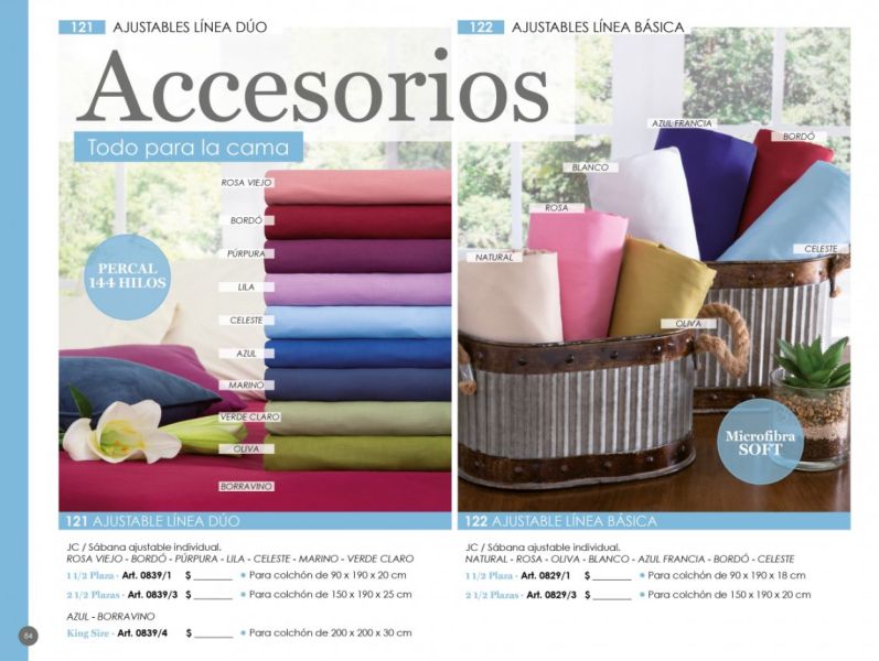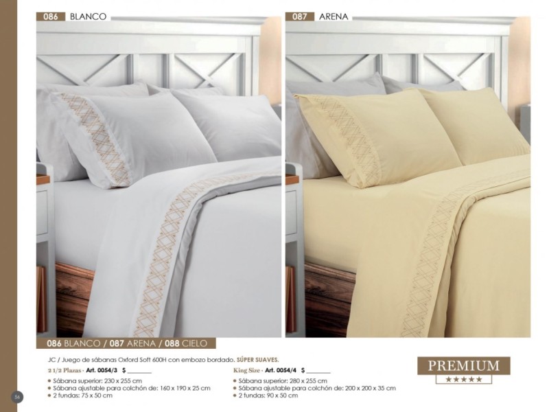 - Sábanas: Línea Ivory Classic, Percal, Oxford Soft Plissé 500 hilos, Oxford Soft 600 hilos.