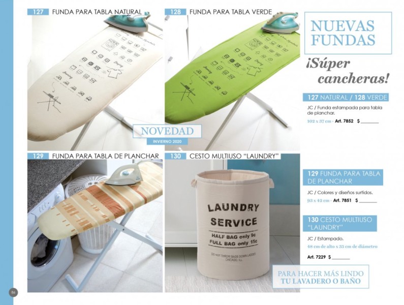 - Cajas organizadoras, cestos multiuso, toallas deportivas y portables, fundas para tablas de planchar, camas para mascotas.