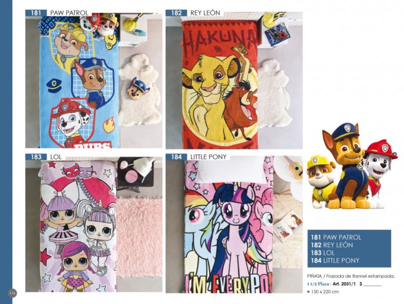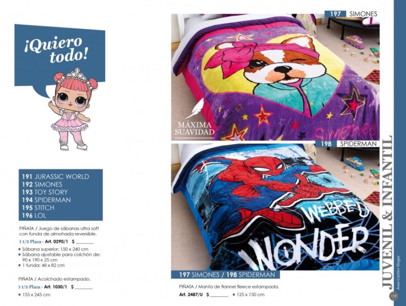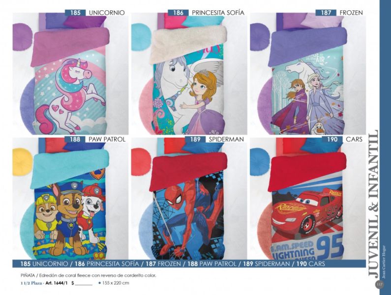 - Línea Disney (Piñata): Acolchados, sábanas, toallones infantiles.
