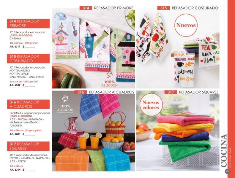 - Manteles, individuales, repasadores, delantales, manoplas, agarraderas.