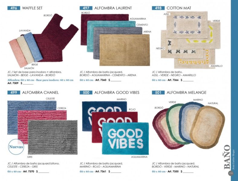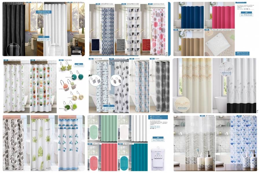 - Cortinas de baño y ducha, barrales, sets de cerámica, alfombras, batas polares, ganchos decorativos.
