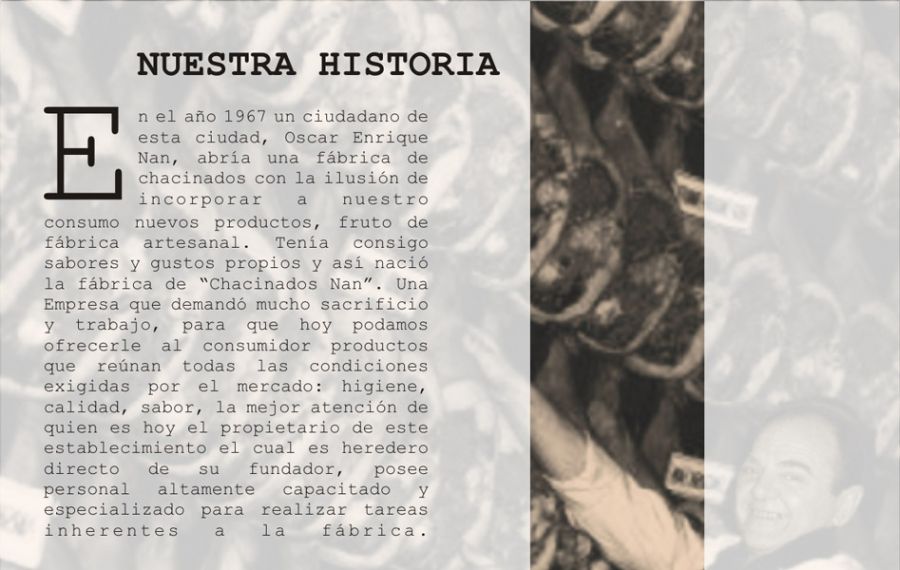 En 1967, Oscar Enrique Nan abría una fábrica de chacinados con la ilusión de incorporar a nuestro consumo nuevos productos de elaboración artesanal. Tenía sabores y gustos propios que le otorgaron gran reputación.