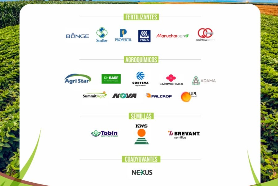 Profertil, Isusa, Stoller, Bunge, Thyssen, Nova, Agrofina, Nexus, Basf, F.A.V, Helm, Nufarm, Dow AgroSciences, Agri Star, SummitAgro, Forratec, Tobin, y muchas más.