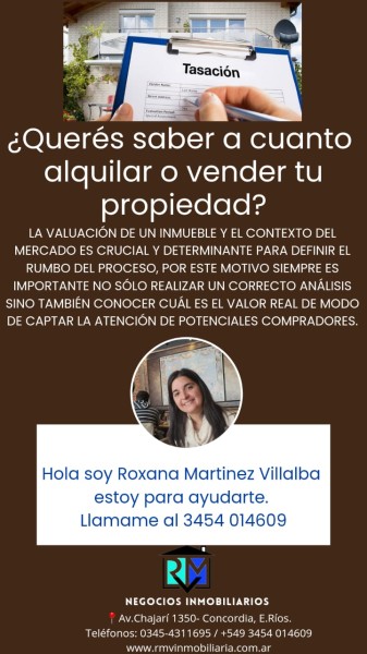 Palabras clave: RMV Inmobiliaria Concordia, RMV Concordia, Inmobiliarias en Concordia, Negocios Inmobiliarios en Concordia, Roxana Martinez Villalba Concordia, Corredores Públicos en Concordia, Martilleros Públicos en Concordia, Tasación en Concordia, Administración de propiedades en Concordia, Alquileres de Casas en Concordia, Venta de Propiedades en Concordia.