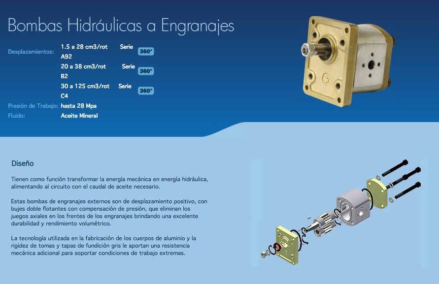 - Bombas hidráulicas a engranajes.
