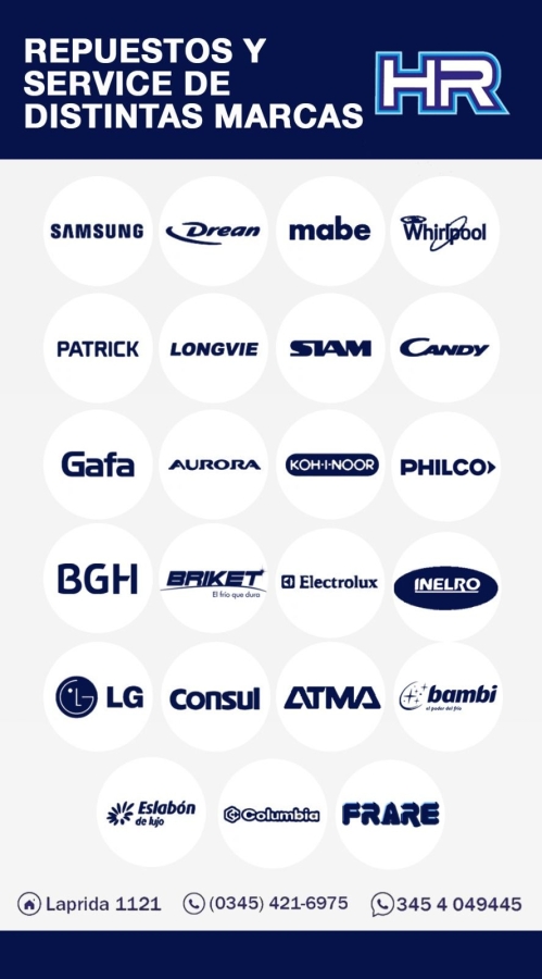 Palabras clave: lavarropas en concordia, heladeras en concordia, lavavajillas, microondas en concordia, secadoras, secarropas, servicio técnico de electrodomésticos en Concordia, HR Concordia, Service Concordia, Servicio Técnico en Concordia, hr service concordia, instalador, instalación de electrodomésticos, instalación de aires acondicionados , venta de repuestos lavarropas, venta de repuestos heladeras, artículos para el hogar, rodriguez service, repuestos de lavarropas, repuestos de heladeras, gases refrigerantes, motocompresores heladeras, aire Split concordia, aire portátil, reparación cavas de vino concordia.